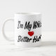 Mugg är min frus bästa halva i 3D-svart text. Finns i flera storlekar och stilar.