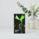 Affärskortsmall med en stil-återutskrift i skärm med en lädermotorcykel jacka i svartvitt, grönt och vitt. Ett anpassade som du kan anpassa med egen text, bilder och egna idéer. Bilden skapades från ett fotografi med digitala tekniker.