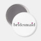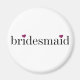Bridesmaid magnet med svart text, fuschia-hjärtan.