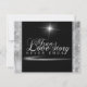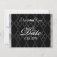 En Kärlek-historia slutar aldrig Bröllop-temat för svarta timer. Skrämmande diamanter ser ut med vit satatin ramar "A Kärlek Story Aldrig Ends"-typografi. Inbjudan är inställd på en svart diamantsammetsbakgrund med satatin ram.