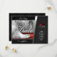 Royal Bride Gwn och Groom tuxedo, spara datumet typografi över ett stort vitt slott med rött mattor. Djup röd toppficka med ruby-rött som visar bröllop-datum med brud och groom namn ansluten till en diamant kärlek-knut på en svart rik-damm med diamantaccent gräns.