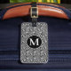 Svart runda ram med monogrammerad tidsuppvärmning paternerat bagagemärke