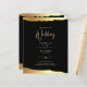 Vi presenterar en lyxig svart och guld folie (utseende, inte riktig folie) bröllopsdesign, perfekt för att tillföra en touch av elegans på er speciella dag. Detta svarta slips bröllopsevenemang, formella tema men ändå väldigt glamorösa design är en del av en koordinerad kollektion. Den svarta och gyllene brölloppskollektionen innehåller föremål som RSVP-kort, spara datum-kort, inbjudningar, välkomstskyltar, klistermärken, servetter, program, bordskort, gåvopåsar, menyer och vinflasketiketter, samt en mängd olika kort- och papperstyper för att passa alla budgetar.