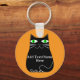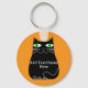 Svart tecknad av tjock med grönt ögon. Cute-kattecken. Nyckelkedjor för anpassningsbar. Redigera text som du vill anpassa. Tanken på kattälskare.