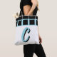 Totebag. Modern & Nutida. Svarta och Turkosa Geometriska Rutor. Initial. Monogram. Brudtärna present. Present till henne.