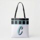 Väskor. Moderna & Nutida. Svarta och Turkosa Geometriska Fyrkanter. Initial. Monogram. Brudtärna present. Present till henne.