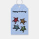 De här märkrna är blå med en grupp av fyra svarta sköldpaddor med abstrakt märkt snäckor i färg av blått, rött, gult och grönt. Anpassa texten längst fram och tillbaka med mallarna.
