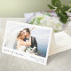 Den här chic-bröllop-fototackmallen innehåller en elegant, minimalistisk och modern design. Framsidan har ditt första namn och datum under ditt favoritfoto och ett "KÄRLEK och THANKS"-meddelande i svart, med en slående blandning av två olika typsnitt, med "och" i ett lätt, flytande skript mellan de andra två ord, som står i övre fodral med ett djärvt, skarpt utseende. Kärlek och THANKS-delen av formgivningen är svart och kan inte ändras. När du redigerar framsidan för att visa ditt eget namn och datum kan du ändra färg i texten till ett visst färg eller något annat i stället för standardvärdet något mjukt svart, enligt din smak. På insidan har vi lagt ett platshållarfoto som du kan ersätta med ett eget foto, skapar det möjligt att ta med två olika foto på framsidan och ett på insidan. Men du kan också helt enkelt ta bort exempelfotot på insidan och lämna det tomma utrymmet. För bakgrundstonen på sidan med text mitt emot insidan av fotot har vi valt en subtil bakgrundsnyans av eleganten som inte är helt vit, det är ett mycket ljust grått som oftast kallas vit rök (färg F5F5). I fodral väljer du att lämna den andra inre sidan med platshållarfotot tom efter att du har tagit bort platshållarbilden. Vi har lagt till samma vita rökton under fotot lagrar som ska synas i fodral så att bakgrunden på den sidan matchar standardtonen för vit röktfärg på textsidan. Men kontrollera om du är i redigeringsläge. I vilket fodral som helst kan du välja att ändra bakgrunden färg på båda sidor eller på ena sidan av insidan av kortet till kostym i stil! Vi har valt en grått-ton som färg som standard för texten inuti. Vi har satt in exempeltext för att du ska kunna ersätta med ditt eget meddelande när du vill, men känna dig inte begränsad av det här. Om du föredrar att ta bort vår provtext helt och hållet och behålla textsidan i kortet helt tom så att du i stället kan skriva en handskriven anteckning på varje kort, kan du göra det. Eller så kanske du vill ersätta vår text med ditt eget tacksamhetsbudskap och din egen stängning och sedan lämna underskriften till namn när du får korten. Du kan också ändra teckensnitt och färg och du kan ändra fodral från det övre fodral-utseende som vi använde. Den pappra standardtypen, projektionsyta, har en mjuk värme och motstår smörjning, så det är ett underbart val att skriva ett eget meddelande. Du kan redigera detta och välja Halvglans i stället. Se hur som helst till att ta bort vårt prov-/platshållartext både utanför och inuti kortet, och kom ihåg att ersätta platshållarfotot på framsidan med ditt eget OCH antingen byta ut eller helt enkelt ta bort platshållarfotot inuti kortet också! Använda den intuitiva designen verktyg och din inspiration och gör det här till ett enkelt tack för chic bröllop för att du kort ditt unika kort. Och bläddra i vår bröllop tack för att du samlat in mer enkelt elegant i modern bröllop tack för att du har använt kortdesignen!