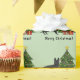Desteis ursprungliga tecknad illustration av en svart färg-tysk Shepherd-hund. Hund står vid ett festligt Julgran med röda prydnadsföremål och gult, en vit pärlträdgård och en gult stjärna på träd. Det finns också två inslagna presenter vid träd och det finns ett textområde som nu lyder: "God jul!". Bakgrunden till färg är ljust grönt.