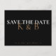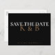 Svart enkelt monogram sparar datumet. Vykort. Guld, svartvit text.