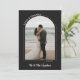 Snygg och elegant fototack som du kan skicka till dina gäster i bröllop. Dubbla vid sidan av bröllop tackar dig för kortet med två foton, ett i ett bågformat ram med KÄRLEK och THANKS skrivet i en kurva. Black bröllop tackar dig för att du kort med namn i ett modernt, vitt penselskript. Svart och vitt fototack som du kort för nygifta. Lägg till ditt personliga tack för ditt meddelande längst bak på fotokortet på dubblan.