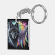 Illustration av en varg med glödande ögon bredvid en färglös drömmare, mot en välinspirerande kosmisk bakgrund, som framkallar mysterium, andlighet och en koppling till natur och drömmar.