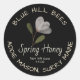 Svart vårhonungsetikett Vit vattenfärgsblomma Runt Klistermärke