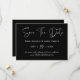 Dela din speciella dag med detta moderna kortet för att spara datumet med svarta vattenfärgskoordinater i en snygg horisontell layout. Perfekt för minimalistiska, formella eller destination bröllop. Anpassa med era namn, datum och plats.