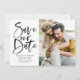 Svart vattenfärgspenselkalligrafi Foto Spara vårt datumkort | Meddelande till familj och vänner om ditt bröllop-datum med det här anpassadet spara det platta datumkortet. Den har svart handskriven modern kalligrafi. Den här snyggten sparar du datumkortet som perfekt för valfri säsong och tema för bröllop. Andra färg och matchande artiklar är tillgängliga.