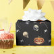 Lägg i dina presenter i ryggradskylande stil! 👻 Tecknad-stil-vita pumpralvhuvudet med glödande innerljus 🎃 och gigantiska 💀. Omgiven av onda pumpor, döskallar 💀, gravsten och spindelnät 🕸️ - perfekt för Halloween Wrapping ! 🕷️