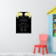 Bröllopsprogram skylt med en vintage illustration av gula blommor och grönska på en klassisk svart bakgrund.