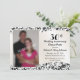 Denna inbjudan till 30-års bröllopsdag har ett svart damaskmönster som bakgrund, ett vågigt pärlfärgat band tvärs över mitten och en anpassningsbar fotoram. Anpassningsbar text på framsidan och baksidan låter dig lägga till dina inbjudningsdetaljer.