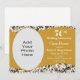 Denna inbjudan till 50-årsjubileum för bröllop har ett svart virvlande damastmönster som bakgrund och en vågig guld rand tvärs över mitten och den anpassningsbara fotoramen. Anpassningsbar text låter dig lägga till dina inbjudningsdetaljer.