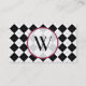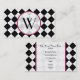 En visitkort som presenterar en svart argylebakgrund med rosor, klipper. Svart text över ren vit. Personifiera med din information. Motsatssidosärdrag som matchar argylebakgrund. Tillfoga dina initiala inre rosor cirklar den formade ramen. Att justera text eller för att ändra stilsortsformat klickar stil eller färg, precis "skräddarsy det!",