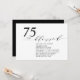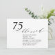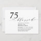 Fira din speciella dag med denna moderna födelsedagsinbjudan. Denna design har en stilren script "75 år Förljud" med en ren layout i en svart & vit färgkombination. Du kan anpassa texten till valfri ålder eller händelse. Fler designs och festtillbehör finns tillgängliga i min butik BaraBomDesign.