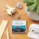 Svart, vit, Aqua Snowflake-Nyckelring Fyrkantig Silverfärgad Nyckelring