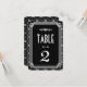 Dessa bordskort har en svart-vit färgpalett, en geometrisk ram, geometriska mönster och andra stilistiska detaljer som alla är inspirerade av Art Deco och den glada tjugotalet. Du kan anpassa textfälten efter eget tycke.