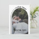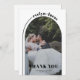 Den här eleganten Tack för ett minimalistiskt bröllop-kort som visar en chic och enkel design med en vacker båge och typografi. Kortet är designat i ett klassiskt svartvitt färg, med en båge och en böjd linje på den lämnat sidan som på ett skickligt sätt sträcker sig mot högerna, med ett smart införlivande av parets namn. Tillsammans med ditt foto innehåller kortet även frasen "TACK", som ger en perfekt att uttrycka sin tacksamhet till dina gäster. På kortets baksida hittar du ett hjärtligt uppskattningsmeddelande som ger en aning värme och uppriktighet till den övergripande designen.