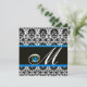 SVART VIT BLÅ DAMASK MONOGRAM Safir Inbjudningar