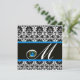 SVART VIT BLÅ DAMAST MONOGRAM Sapphire Inbjudningar