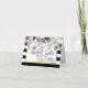 Vackra moderna bröllop tack-kort. Svarta och vita ränder med falskt guld ram och akvarell blommig lavendel, syrlil, violett, lila. Skript topografi bokstäver. Personifiera dem genom att lägga till era namn med möjlighet foto / bild inuti kortet.