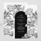 Svart vit blomsterbåge bröllopsinbjudan inbjudningar
