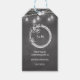 Svarta Vita Bröllopspresent Tags med rustik bakgrund av svart tavla, snören lampor, murar kruka, blomsterkrans och parets initialer. Fler produkter med denna design i kollektionen nedan.