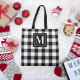Behåll det klassiskt med denna djärva tote som har ett genomgående svart och vitt buffalo rutigt mönster och en personlig monogram initial i en snygg ramad fyrkant. En tidlös design som fungerar för helgdagar och långt därefter som en vardaglig accessoar. Initial är helt anpassningsbar.