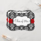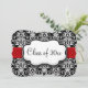 Svart/Vit Damask Röd Band Examen Inbjudningar
