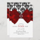 Svart & Vit Damask Röd Rosett Glam Söta 16 Fest Inbjudningar