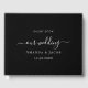 En stilren svart bakgrund. Anpassa och lägg till dina namn och bröllopsdatum. Vit text.
