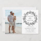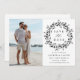 Detta eleganta bröllop sparar datum-kort har en silhuettkrans av vildblommor med ert foto och parets initialer på baksidan. För mer avancerad anpassning av denna design, klicka på den BLÅA DESIGNVERKTYGSKNAPPEN ovan!