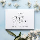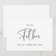 Ett enkelt och minimalistiskt kort för att skriva ett personligt och hjärtligt meddelande till din far på din bröllopsdag. Helt anpassningsbart med dina favoritfärger (text och bakgrund). Du kan lägga till ett meddelande på baksidan, eller lämna det tomt om du hellre vill skriva din hälsning för hand senare.