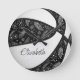 Denna söta basketklocka på väggen har en realistisk bild av en basketboll med omväxlande svarta och vita omfärgade paneler med känsliga doodle-blommor, fjädrar och paisleymönster på basketbollens svarta paneler - personifiera med idrottarens namn för hennes basketrum - av katz_d_zynes