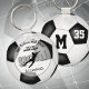 Den här flickans fotbolls-knackningskedja har "målet" ord med överliggande silhuett av en kvinnlig fotbollsspelare som sparkar en liten svart och vit fotboll plus anpassade player namn och jersey-nummer och skola och mascot namn, som alla ligger över en stiliserad, traditionell stil-soccerkulgrafik - av katz_d_zynes