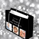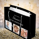 För en 50:e (eller någon annan ålder) födelsedag. En klassisk svart bakgrund. Anpassa och lägg till 3 av dina egna foton, ett datum, namn och 50 år. Vit text. Namn är skrivet med ett modernt handskript i stil.