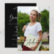 Visa ditt stöd med denna enkla och klassiska 2-sidiga gradueringsfestinbjudan. Framsidan visar en bild av din examen, och den svart-vita baksidan har sans serif- och scripttypografi. Byt bara ut bilden mot en bild av din examen och lägg till detaljer. Den svarta bakgrundsfärgen kan ändras för att matcha din skola eller festens färger.