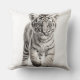 Ta med den vilda skönheten från djungeln hem genom denna fantastiska svart-vita fyrkantiga kudd med tigrungemotiv.