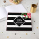 Elegant svart och vit horisontell geometrisk ränder mönster och exotiska rosa blommor