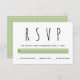 Modern svarskort för svart, vit, grönt, bröllop OSA. Den har svart OSA i ord i ett modernt teckensnitt och ett band i grönt. Baksidan innehåller ett geometriskt mönster i vitt på sidans grönt.
