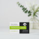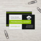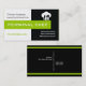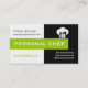 Affärskort för svartvit grönt med svartvit kock som minimalistisk öga-kock, med en vit kock - skaka med gaffel, sked och knivar på svart bakgrund och texten "Personal Chef" i ett kalkgrönt band. Perfekt för feminin professionell för huvudkockar, personkockar, kock de cuisine, chef, chef eller catering.