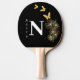 Svart, vitt typsnitt, guldblomma, glitter, fjäril, minimalistisk Ping Pong Paddle med monogramm. Initial-, Namn- och yrkesverksamhet kan anpassas. Enkel modern design.