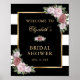 Elegant svart och vit randig blommig välkomstskylt för bröllopsfest. Matchande artiklar finns tillgängliga.