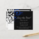 Den mest svarta designen med en vit och dekorativ piskning snabbt i inslag. Anpassa onlinen med bröllop-informationen.